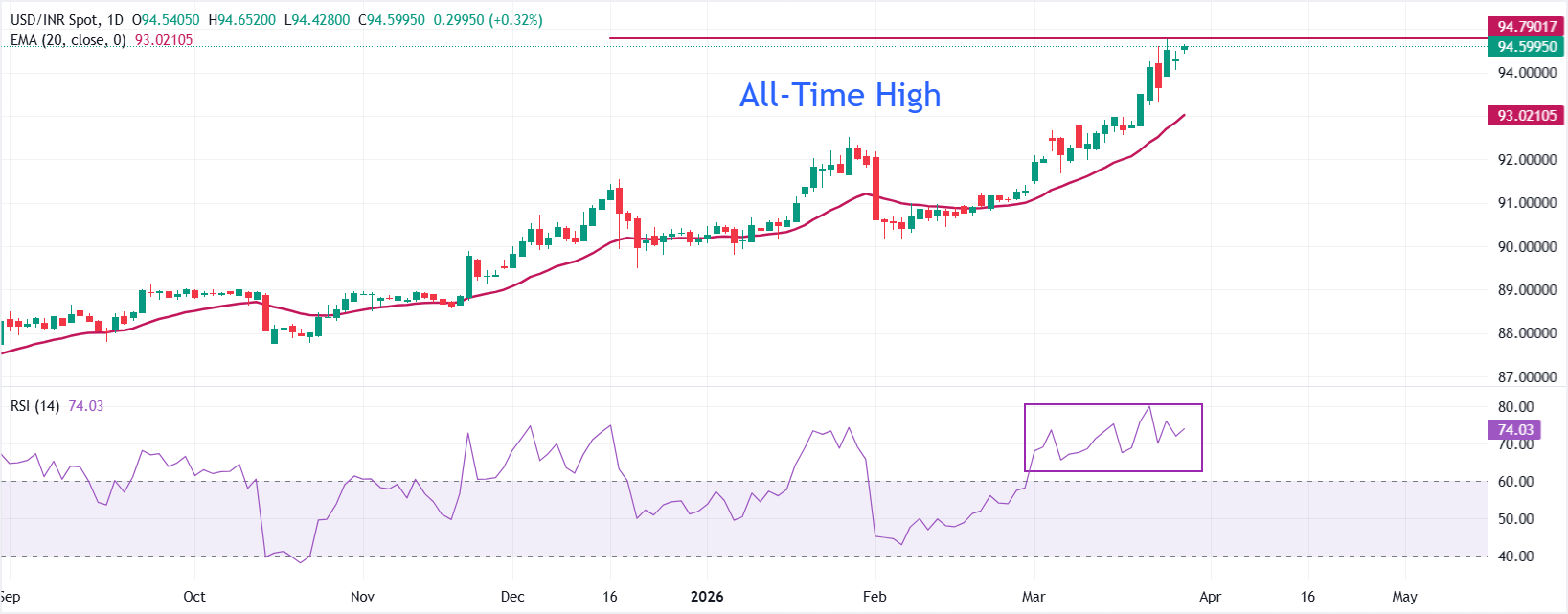 The Japanese Yen (JPY) continues with its relative underperformance amid concerns that the war-driven surge in energy prices would weigh on Japan's trade balance and economic outlook. Furthermore, a sustained increase in Oil prices would drive up inflation and create a classic stagflationary environment, complicating the Bank of Japan's (BoJ) normalization efforts. This, along with the underlying US Dollar (USD) bullish sentiment, acts as a tailwind for the USD/JPY pair.